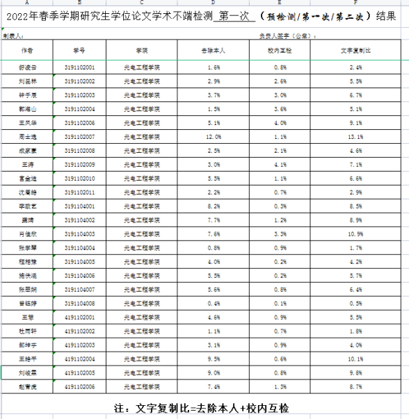 betway西汉姆联平台2022年春季学期研究生学位论文学术不端检测(第一次结果)