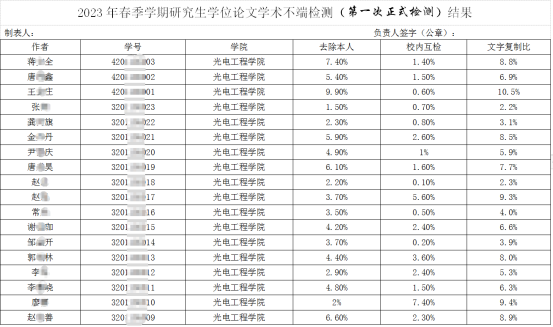 2023年春季学期研究生学位论文学术不端检测结果(第一次正式检测)-betway西汉姆联平台