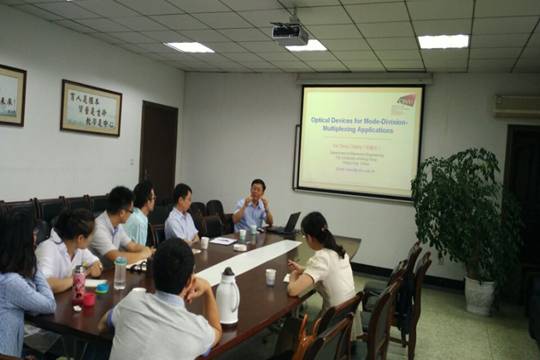 8月26日上午,香港城市大学电子工程系首席教授、美国光学学会(OSA)会士(Fellow)郑建成博士应光电技术学院邀请,在信息楼312会议室作了题为《模分复用关键器件研究》的学术报告。光电技术学院光波导器件与集成、光电信息材料与器件、微系统与LTCC技术等科研团队部分成员参加了此次报告会,报告由学院院长朱兴华教授主持。