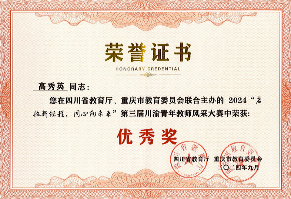 高秀英教师获第三届川渝青年教师风采大赛优秀奖