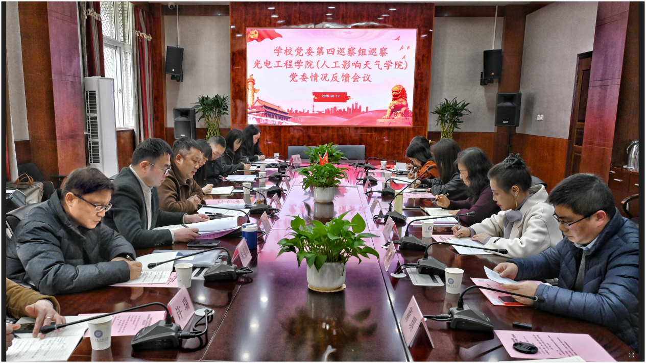 3月12日下午,学校党委第四巡察组巡察betway西汉姆联平台(人工影响天气学院)党委情况反馈会在行政楼六会议室召开。学校党委常委、副校长舒红平出席会议,校纪委副书记、纪委纪检监察室主任唐艳,党委组织部副部长厉威成,党委第四巡察组组长刘敦虎及全体成员,betway西汉姆联平台党政班子成员、科级干部、教研室主任及教师代表参加了反馈会。会议由betway西汉姆联平台党委书记邓丽琴主持。