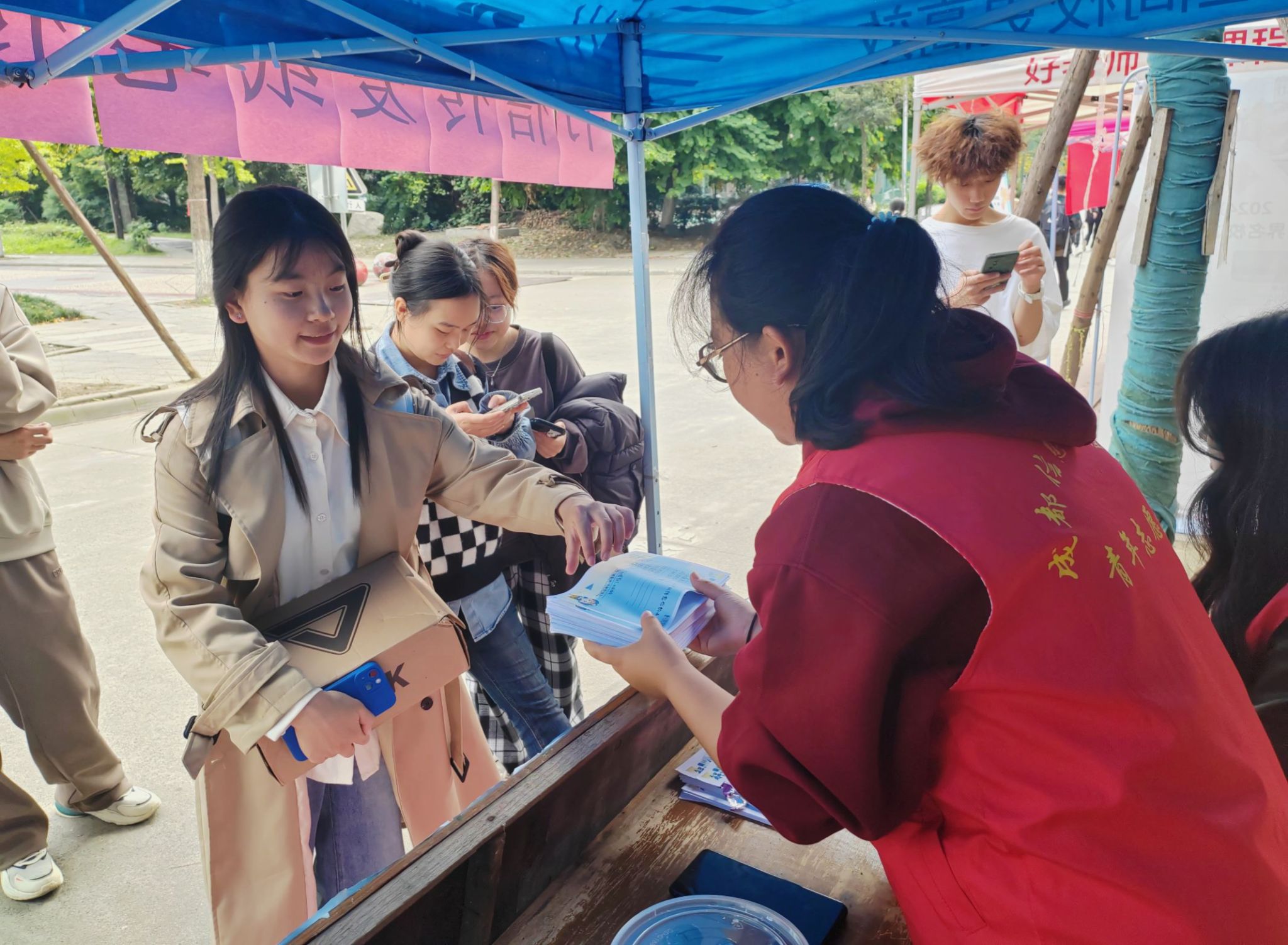 赠你予信,伴你以爱。11月3日,由成都信息工程大学青年志愿者协会betway西汉姆联平台分会组织的“书信传爱,纸笔传情”蓝信封摆点活动在银杏大道成功举办。