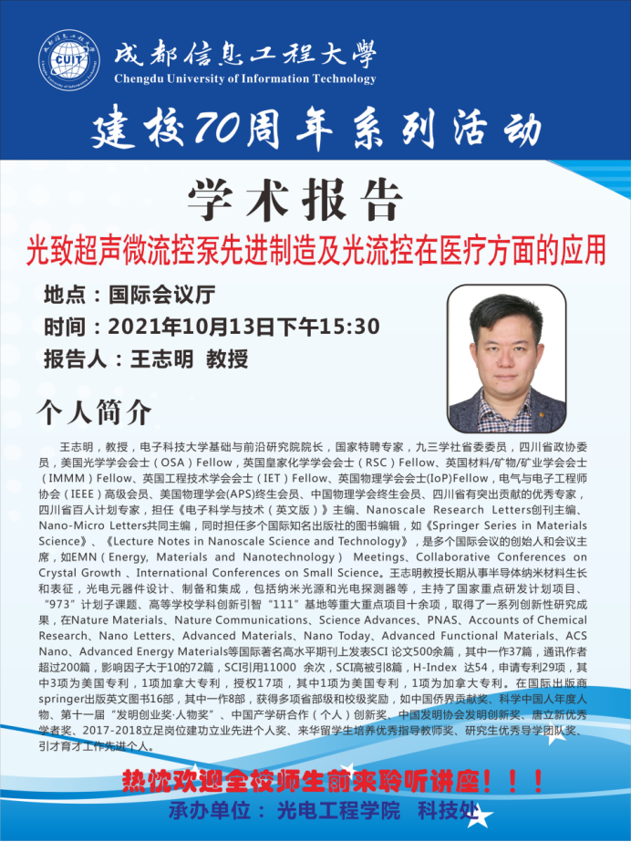 学术预告:光致超声微流控泵先进制造及光流控在医疗方面的应用