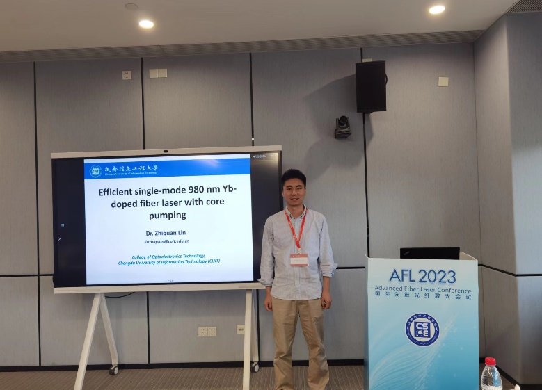 会议的主题包括光纤及光纤器件、高功率光纤激光器、超快光纤激光器和非线性光纤光学、中红外光纤激光器及超连续谱、激光应用等,设立“Fiber Laser in 2023”评选、青年科学家论坛、学生论坛等活动。会上,林治全博士“Efficient single-mode 980 nm Yb-doped fiber laser with core pumping”为题介绍了一种基于纤芯泵浦获取高效率980nm激光输出的新途径及近期在高功率900nm波段掺钕光纤激光器方面的重要进展。