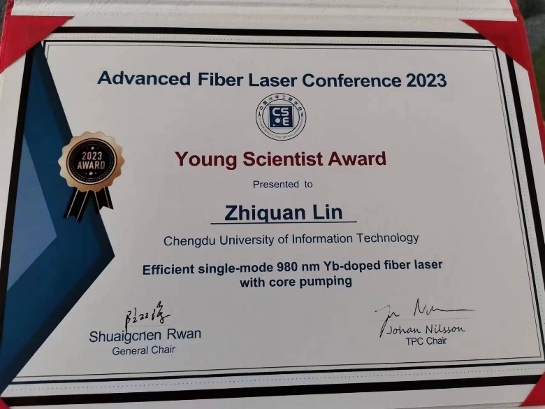 2023年11月10-12日,国际先进光纤激光大会(Advanced Fiber Laser Conference,AFL 2023)在深圳举行,我院林治全博士受邀参会青年科学家论坛,获Young Scientist Award奖。