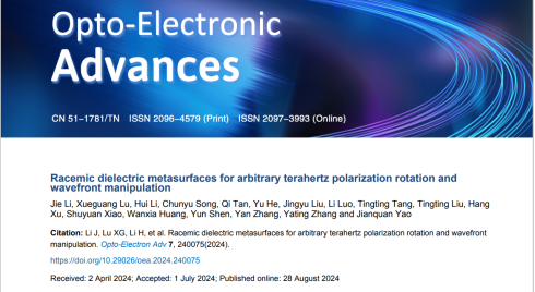 近日,我院光学工程系青年教师李杰博士在中科院一区期刊《Opto-Electronic Advances》(影响因子:15.3)上以我校为第一署名单位发表题为 “Racemic dielectric metasurfaces for arbitrary terahertz polarization rotation and wavefront manipulation” 的研究论文。李杰博士为第一作者,合作单位为天津大学、四川大学等。