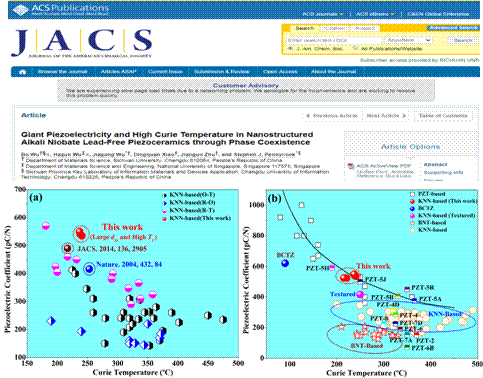 根据Web of Science ESI (2018.08)最新公布的数据显示,我院吴波博士以第一作者在Journal of the American Chemical Society(影响因子:14.357,JCR一区)上发表的论文《Giant Piezoelectricity and High Curie Temperature in Nanostructured Alkali Niobate Lead-Free Piezoceramics through Phase Coexistence》被引次数入选“材料科学”领域全球最优秀的前1%,并被ESI (EssentialScience Indicator)高被引论文收录。该论文...